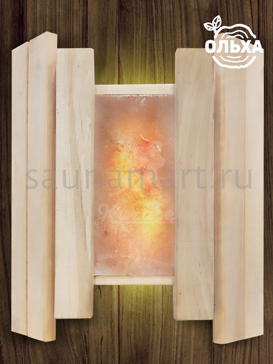 Натуральные материалы, интересный дизайн, приятная фактура древесины и уникальный природный рисунок соли – сделают абажур главным элементом декора бани, создающим неповторимую атмосферу. Для изготовления абажура используется древесина ольхи премиального качества, а так же декоративная вставка из 100% натуральной гималайской розовой соли, создающая приятный теплый свет. Абажур поможет организовать грамотное освещение: даст мягкий рассеяный свет непосредственно в парной или комнате для отдыха. Абажур для светильника оснащен угловым креплением, легко устанавливается на стену и делает освещение в помещении сауны ещё более атмосферным и расслабляющим. При нагревании, вставка в абажуре из гималайской соли ионизирует воздух, что дает оздоровительный эффект, улучшает иммунитет и благотворно влияет на воздух в помещении. Размер изделия: 34,5х30,5х9 см, размер вставки из гималайской розовой соли 19,5х10х2,5 см.