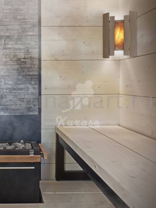 Абажур поможет организовать грамотное освещение: даст мягкий рассеяный свет непосредственно в парной или комнате для отдыха. Абажур для светильника оснащен угловым креплением, легко устанавливается на стену и делает освещение в помещении сауны ещё более атмосферным и расслабляющим. При нагревании, вставка в абажуре из гималайской соли ионизирует воздух, что дает оздоровительный эффект, улучшает иммунитет и благотворно влияет на воздух в помещении. Размер изделия: 34,5х30,5х9 см, размер вставки из гималайской розовой соли 19,5х10х2,5 см.