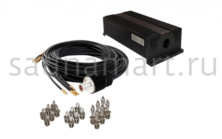 Полный комплект, включает светодиодный проектор VPL10K, жгут волокон, 7 светодиодных хрустальных насадок и блок питания. Источником света в проекторе служит светодиод холодного света 1 Вт.