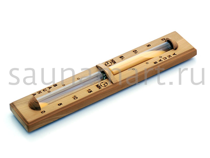 Размер часов 6,5x2,5x34,5 см. Корпус часов выполнен из древесины кедра высочайшего качества и жаропрочного стекла. Прибор не боится высокой влажности и температуры, поэтому идеально подходит для использования внутри парной.