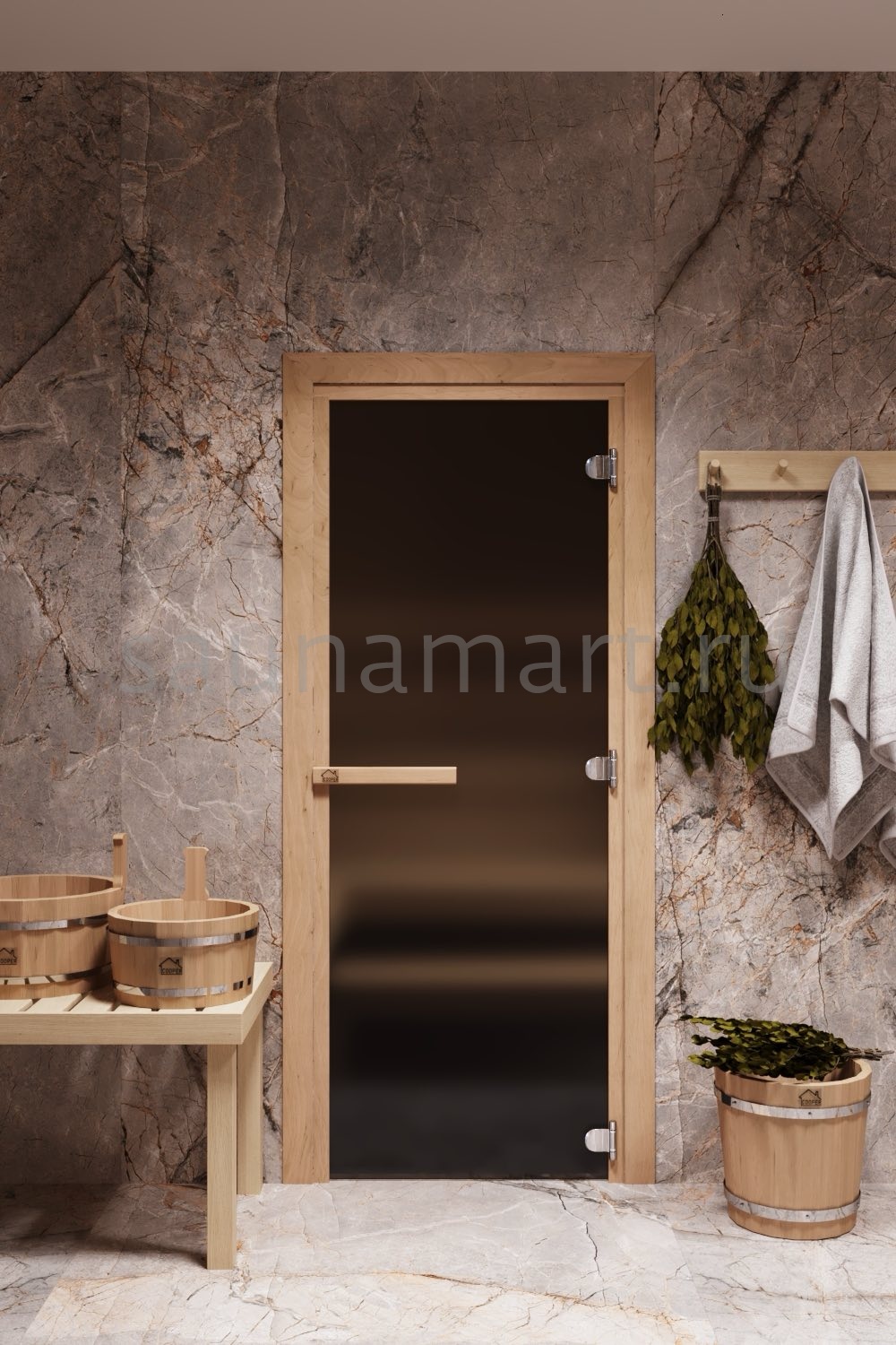 Дверь для сауны 2000х800 Бронза матовая 8 мм 3 петли ольха
