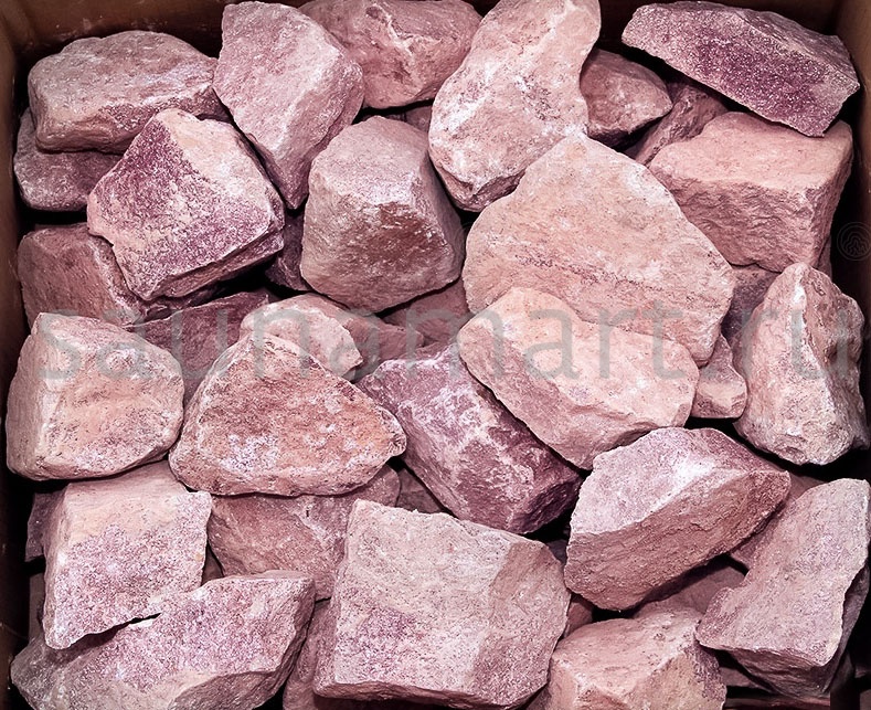 Камень «Малиновый кварцит» колотый — уникальный банный камень редкого пурпурного цвета. Упаковка: коробка 20 кг.