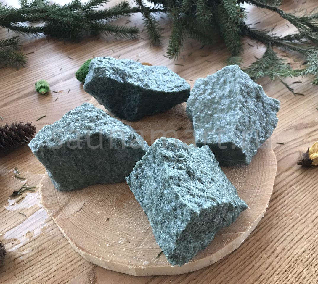 Камень жадеит колотый фракции 40-70 мм — натуральный минеральный наполнитель для банных печей. Упаковка: мешок 10 кг. Месторождение: Хакасия, Россия.