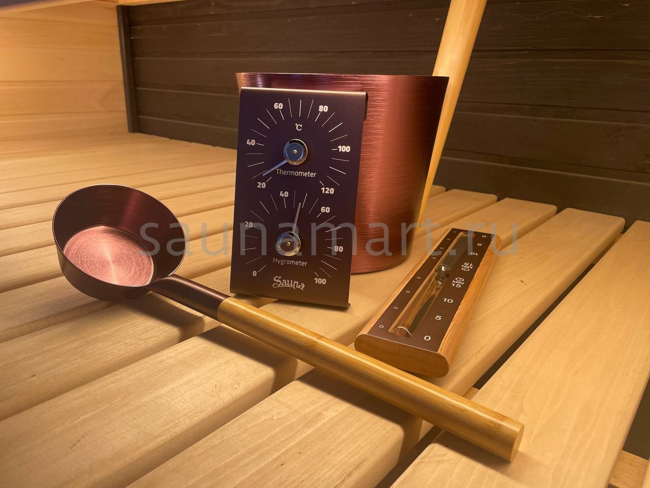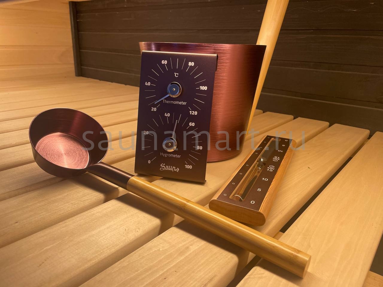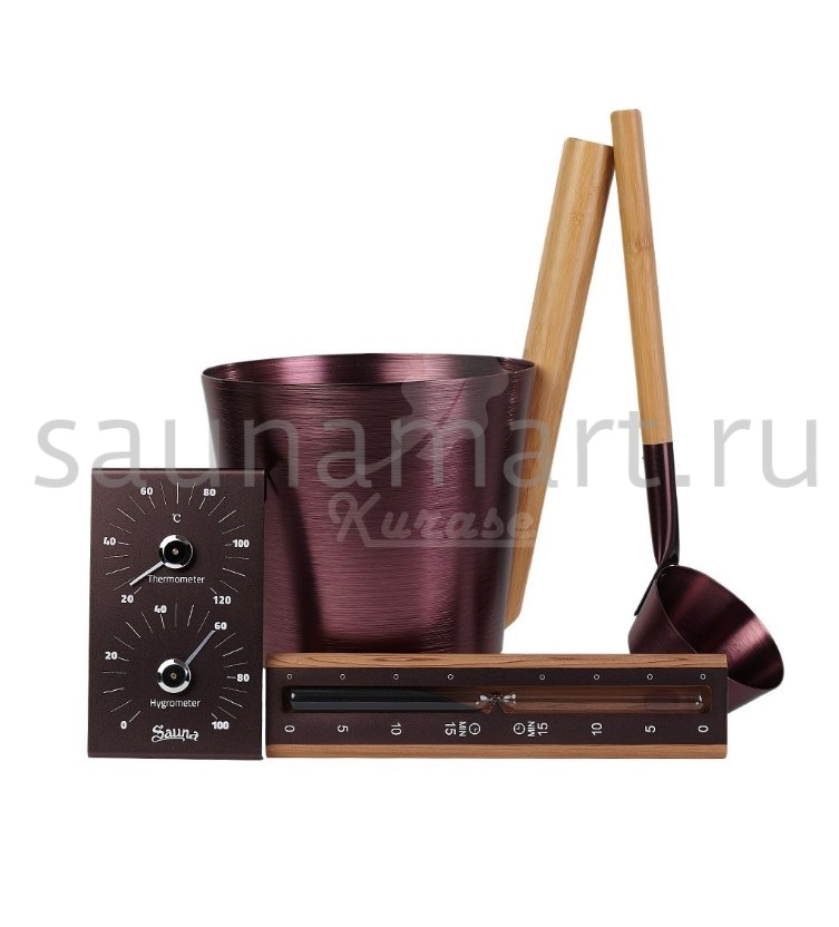 Набор ушат черпак песочные часы термогигрометр BRONZE Kurase