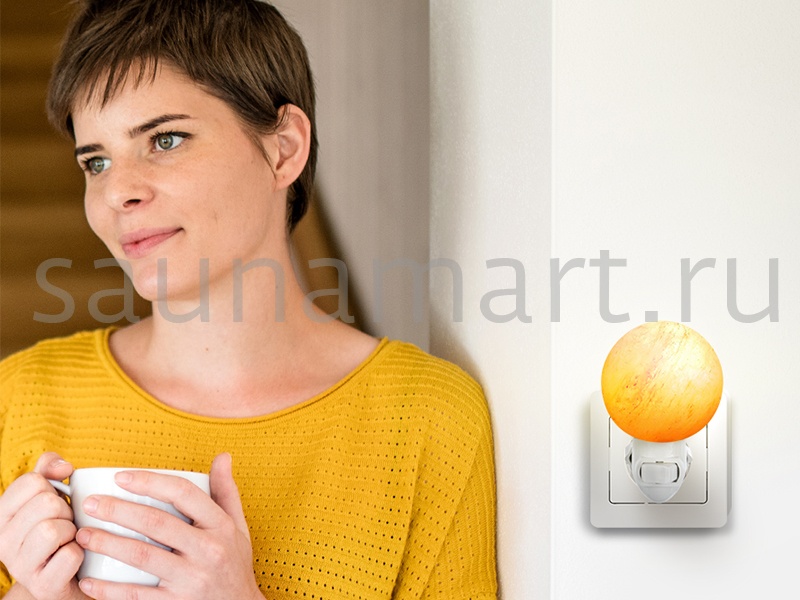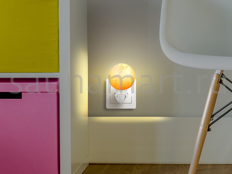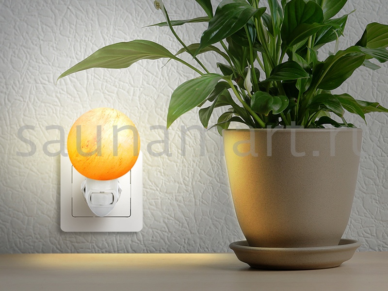Ночник декоративный в розетку из гималайской розовой соли. Теплый, мягкий, рассеянный свет ночника даст приятное освещение и создаст неповторимую атмосферу уюта в доме. Приглушенный свет соляного плафона ночника не помешает сну, поэтому декоративный светильник прекрасно подойдет для использования в детской комнате и спальне. Во всем мире принято считать, что гималайская соль является природным ионизатором воздуха, а подсвеченная изнутри абажура соль, дает эффект цветотерапии. Ионизированный воздух благоприятно действует на нервную систему, за счет чего улучшается сон, снижается излишняя тревога и стрессы. Светильник из гималайской соли это уникальный декор интерьера. Плафон изготовлен вручную, поэтому каждый ночник из соли имеет свой уникальный вес, размер, цвет, форму, внутренний узор, фактуру. Темные, светлые вкрапления и трещинки являются нормой. Абажур различается по цвету от белесого, полупрозрачного до оранжево-розового - сортировка по цвету не производится.