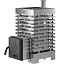 Стальной кожух открытой каменки вмещает в себя до 160 килограммов банного камня.