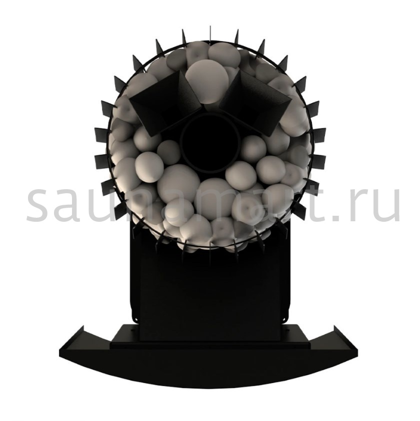 Эта модель печи может комплектоваться теплообменником, усилением камеры горения, сеткой с камнями на дымоход, декоративными экранами. Металлические ламели сетки для камней можно заменить на каменные в любое время.