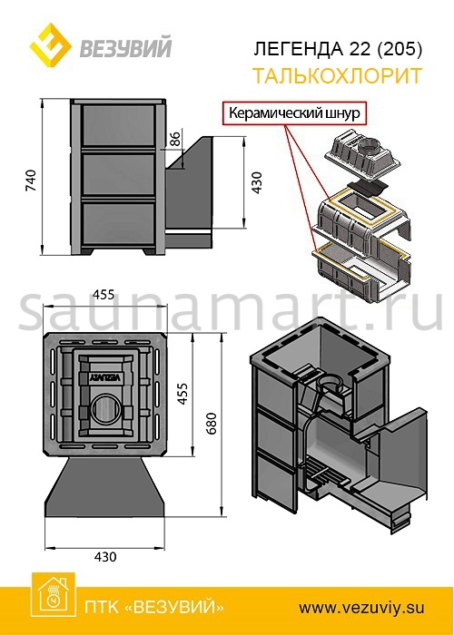 Печь дровяная ВЕЗУВИЙ Легенда 22 талькохлорит дверца 205