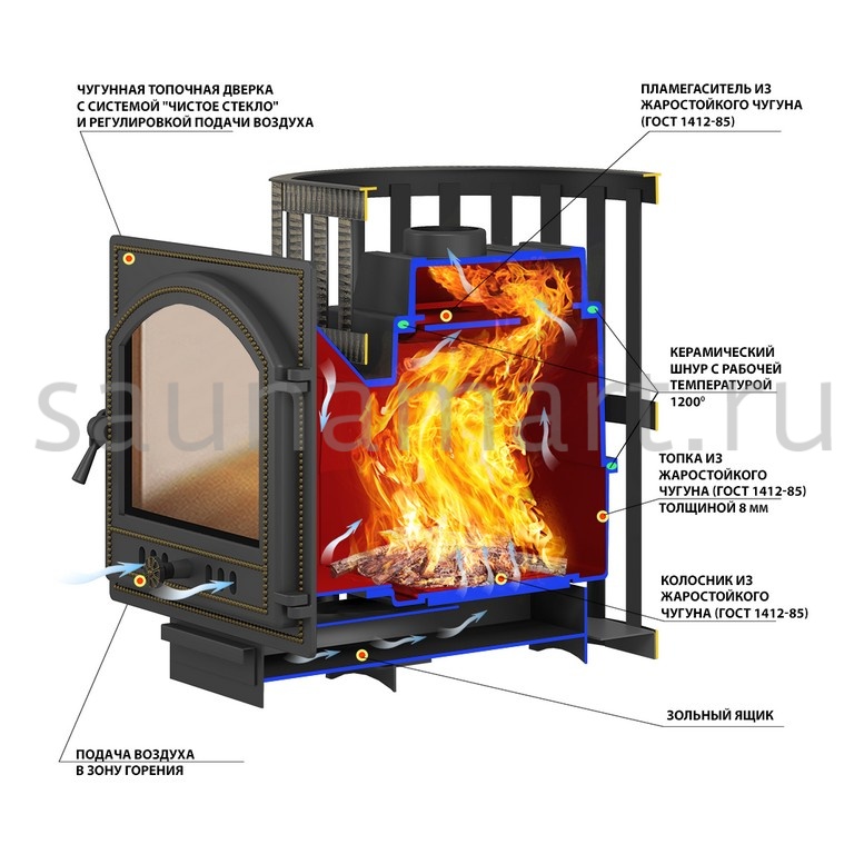 • Материал топки: жаростойкий чугун (гост 1412-85)