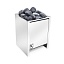 ТЭН из специальной нержавейки обладает повышенной электробезопасностью и большой тепловой инерцией. Представленная модель электрокаменки имеет отсек для камней, который вмещает до 80 кг. Она монтируется напольно. Электропечь не имеет в комплектации выносного пульта управления, который приобретается отдельно.