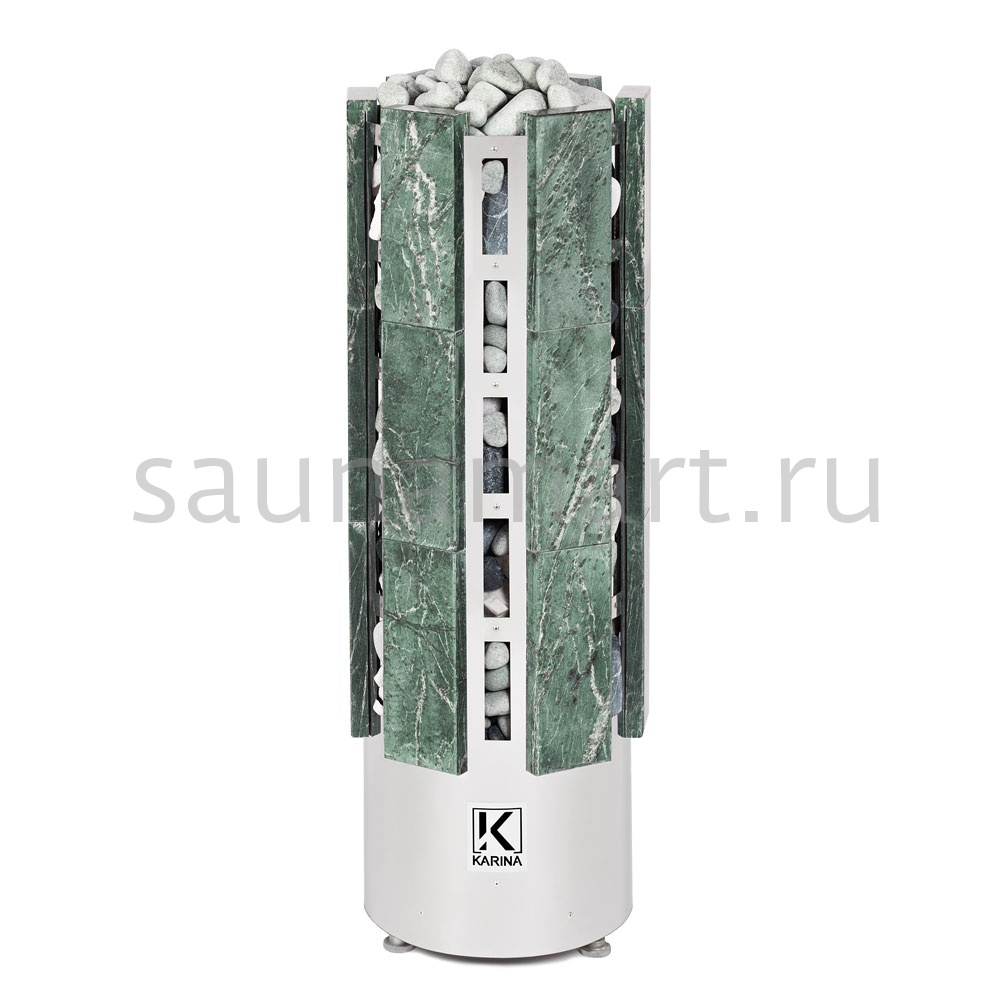 Электрокаменка Karina Forta 18 Змеевик предназначена для использования в парных объемом до 30м3. Печь выполнена в напольном варианте и обладает цилиндрической формой дополненной плитами из натурального камня Змеевика. Напряжение питания - 380В. Данная модель имеет 9 тэнов, расположенных в виде треугольника. В центре внизу расположен бак для воды емкостью 5л, который является парогенератором. Выше парогенератора имеется емкость под мелкие камни или нержавеющие шары объемом 4.7л, вмещающая 10 кг мелкого камня, называемая закрытой каменкой с воронкой для подачи воды и получения мелкодисперсного пара. Электрическая печь Karina Forta 18 Змеевик многофункциональна, и при правильной эксплуатации она подойдет для любителей как финской сауны, так и русской бани.