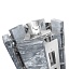 Все корпусные элементы печи выполнены из нержавеющей стали. Нагревательный элемент - ТЭН диаметром 10мм. Наружный кожух каменки дополнительно облицован плитами из Змеевика толщиной 40мм, что придает ей еще большую теплоемкость и меньшее излучение от металлических элементов, которые выжигают воздух в парной. Общий вес камней составляет 160кг (загрузка печи 100кг и вес облицовки 60кг). Вес камней сопоставим с закладкой в хорошую дровяную печь, тем самым с помощью парогенератора, закрытой каменки и закладки камня в 160 кг, легко достигается режим настоящей русской бани.