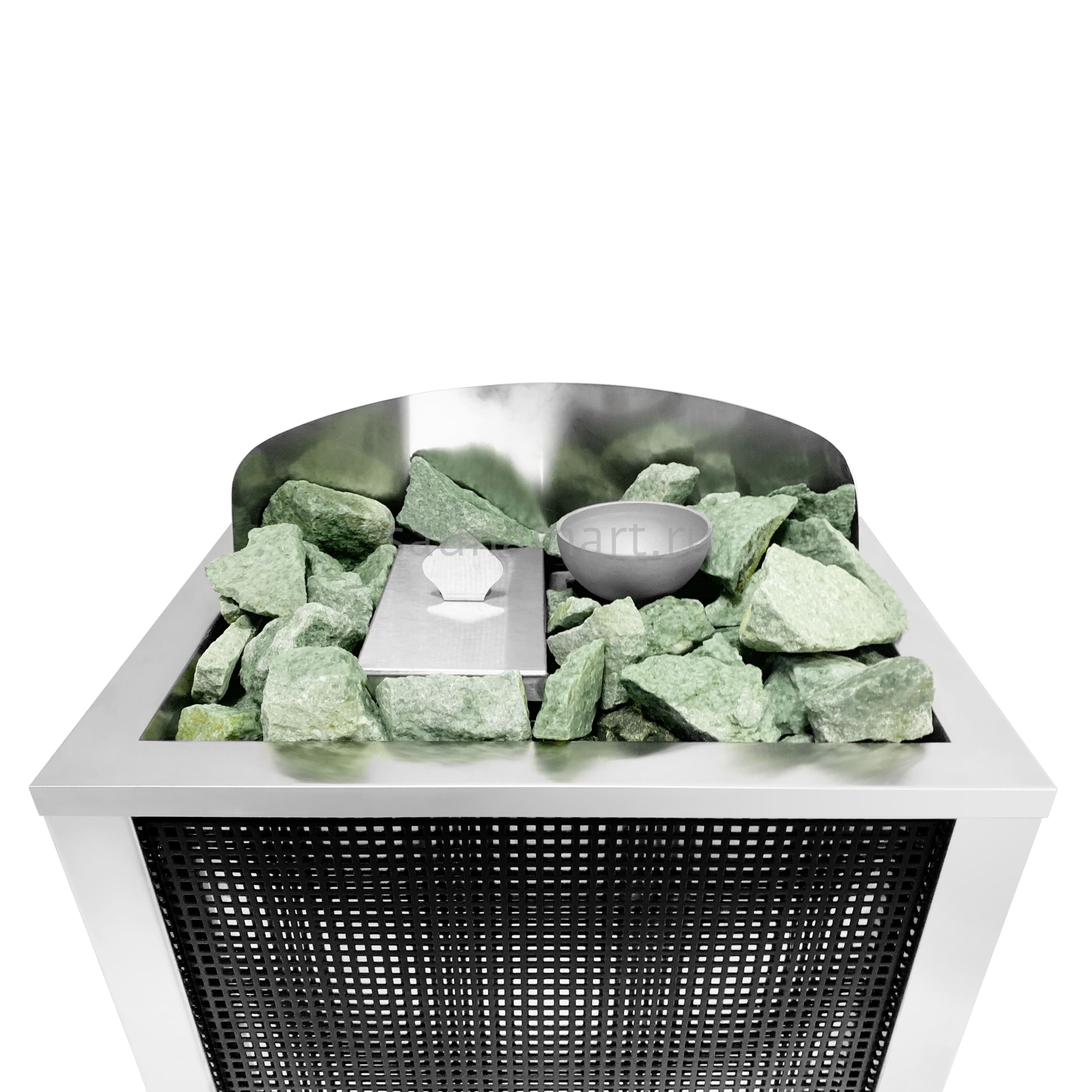 При достижении показателя заданной температуры, электрокаменка полностью не отключается, а работает на постоянной основе в 50% от максимальной мощности, чтобы камни в печи всегда были горячие и давали пар. В отличии от любых аналогов (где печь отключается целиком, и камни становятся холодные). При понижении температуры в парной на 2-3 ? от заданной, вторые 50% мощности подключаются, и каменка начинает работать в полную мощность.