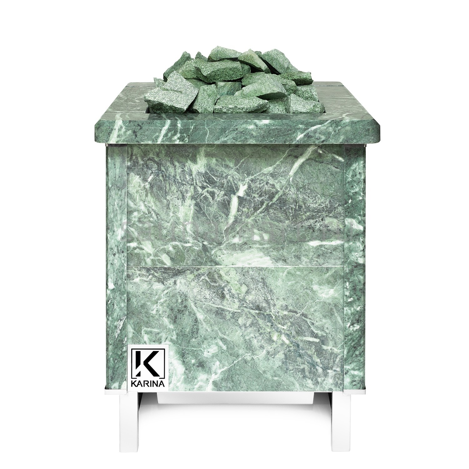 - Целебные свойства: Электрическая каменка со всех сторон облицована натуральным змеевиком, который стильно смотрится в парильном помещении. Змеевик, называемый «аптекарским камнем», обладает целебными качествами: оказывает обеззараживающий эффект, положительно влияет на кости, успокаивает и укрепляет иммунитет.