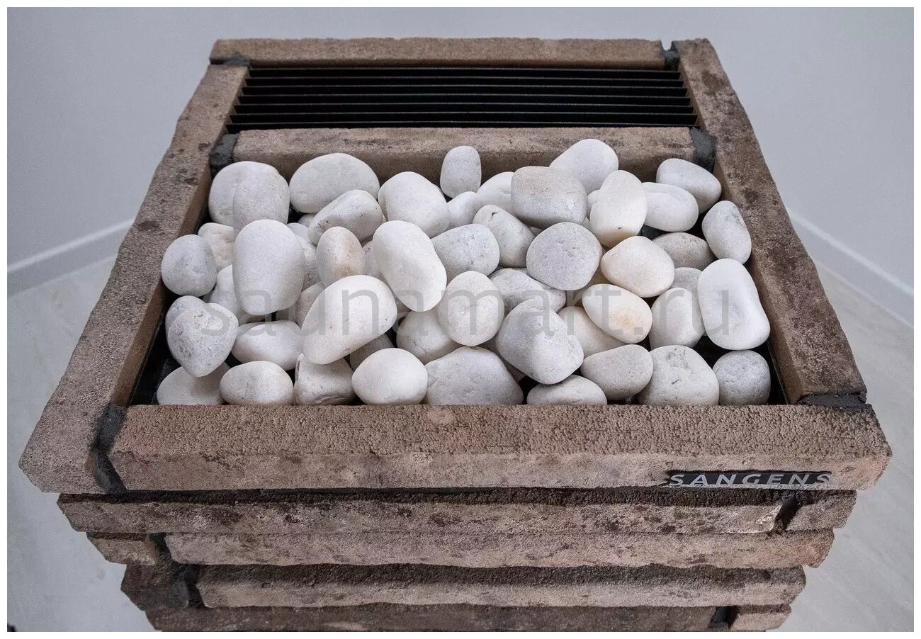 Электрическая банная печь Sangens W12B — 6-киловаттная модель из серии W для помещений 9-10 м? (9 м? для сауны, 10 м? для бани). Оснащена комбинированной каменкой (закрытый отсек: 25-45 кг камней, открытый: 15 кг) с нагревом до 530°C за 2.5 часа, прогревает парную до 70°C за 1.5 часа. Управление — дистанционное и ручное. Облицовка — ригельный кирпич (коричневый, 110 кг), общий вес — 165 кг. Габариты: 54?54?95.5 см. Камни приобретаются отдельно.