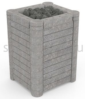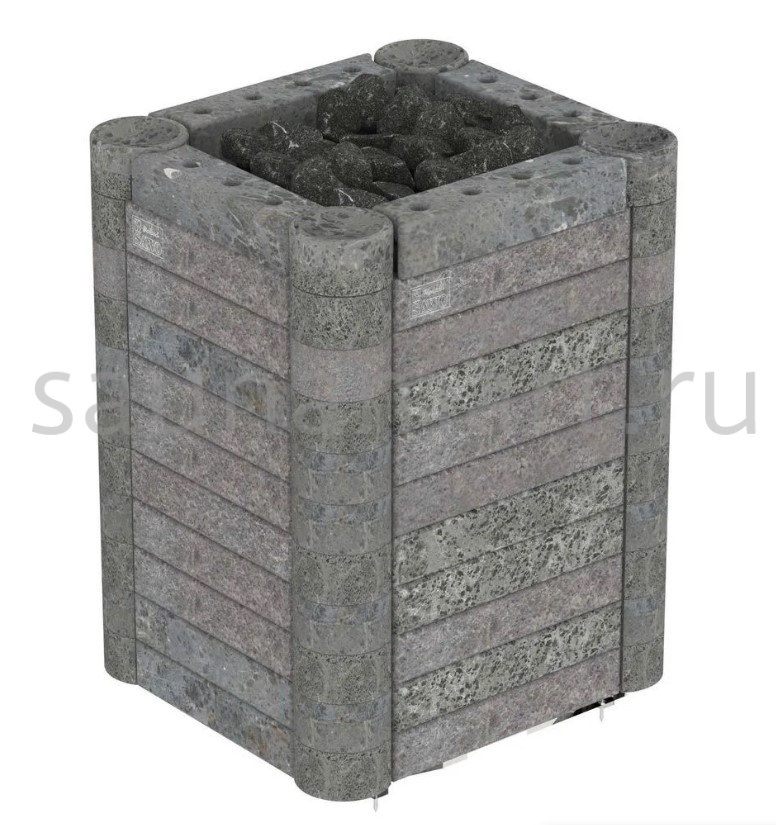 Благодаря каменной поверхности печь очень быстро прогревает помещение парной объёмом 10-18 метров кубических. Расход электроэнергии при этом весьма экономичен, так как каменная облицовка длительное время сохраняет тепло. Помимо облицовки из талькохлорита, в данную модель вмещается до 50 кг камней, что делает площадь испарения поддаваемой на электрокаменку жидкости колоссальной. Вы сможете в считанные мгновения добиться требуемого уровня влажности, наполнив парную легким мелкодисперсным паром.