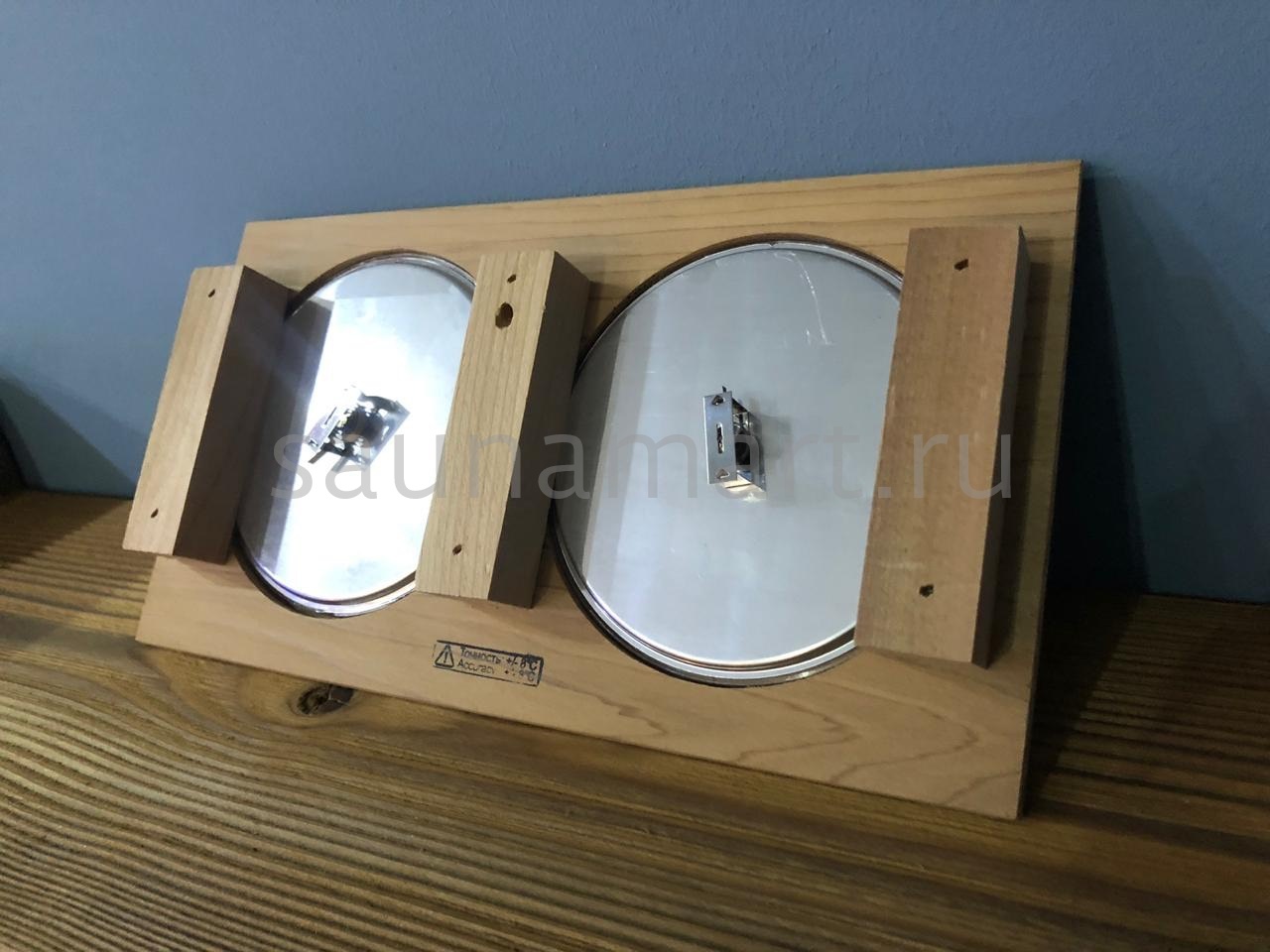 Термогигрометр 221-THED от компании Sawo имеет оригинальную прямоугольную форму. В широкой рамке из древесины кедра находится два квадратных окошка. Под стеклом каждого окошка расположен графичный циферблат. Один из них - это гигрометр, который с точностью измерит уровень влажности в парной, другой - термометр, который сообщит о температуре воздуха. Данный прибор прекрасно подойдёт для использования в любом парильном помещении. В нашем интернет-магазине представлен широкий ассортимент измерительных приборов в корпусах из разных видов древесины.