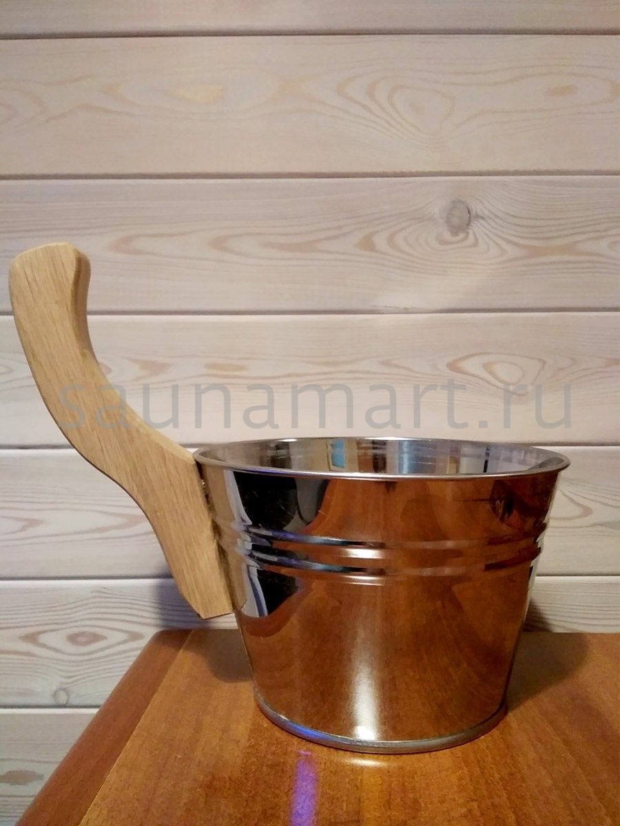 Необычный аксессуар для бани и сауны. Ушат изготовлен из высококачественных материалов, имеет оригинальный дизайн, удобен в использовании. Нержавеющая сталь, из которой выполнен ковш, отличается стойкостью к коррозии, эстетичностью и долгим сроком службы.