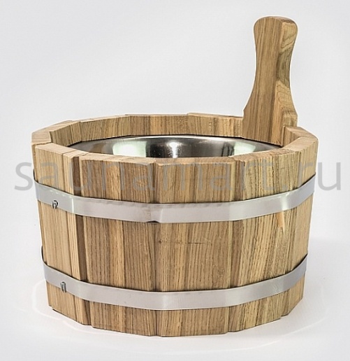 Ушат для бани и сауны, изготовленный из кавказского дуба с нержавеющей вставкой на 3 литра. Используется для заваривания запарок и подготовки жидкости для ароматерапии в парилке. Эта небольшая и удобная бондарная емкость подходит также для мытья. Благодаря нержавеющей вставке, древесина не будет рассыхаться и шайка прослужит долго, при минимальном уходе.