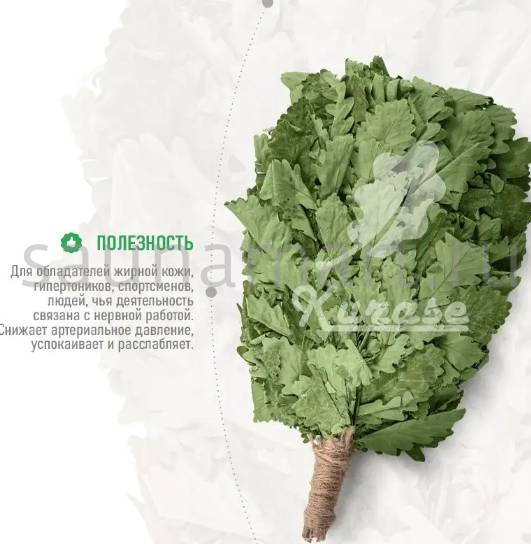 Листья и веточки дуба богаты эфирными маслами и дубильными веществами. Дубовый веник эффектно выглядит, ароматен, а благодаря особой форме резных и широких листьев он способен отлично впитывать пар.