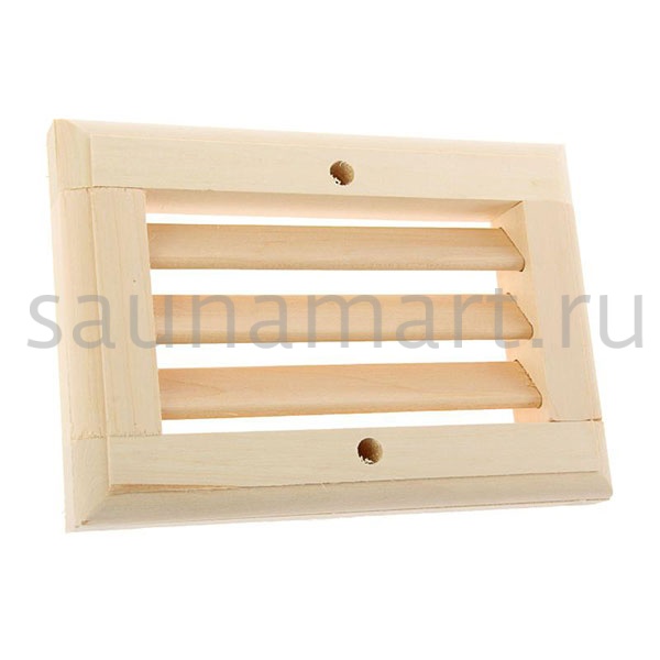 Вентиляционная решетка для бани и сауны. Предназначена для притока воздуха без возможности закрытия вентиляционного отверстия. Изготовлена из натурального дерева – липы.